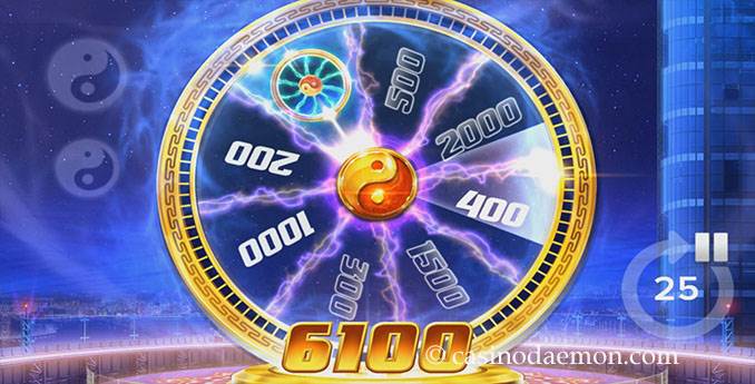 Das Yin-Yang Symbol ist das Bonussymbol und mindestens drei dieser starten das Wheels of the Sky Bonusspiel. Mit mehr Bonussymbolen bekommst du mehr Leben für das Bonusspiel. In diesem Spiel gibt es drei Räder über den Türmen. Du wirst am unteren Rad beginnen. Du kannst entweder einen Münzgewinn, einen leeres Feld oder ein Rad-Symbol bekommen, was dich dann zum nächste Rad führt.